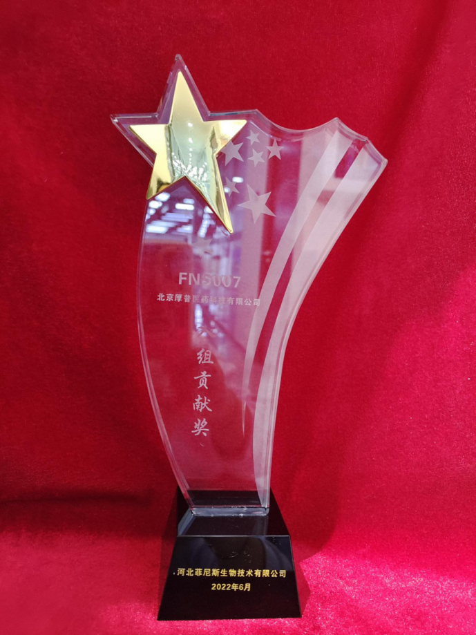 其中,获得申办方菲尼斯生物科技颁发“入组贡献奖”奖杯,申办方对我司招募团队在FNS007项目中的卓越表现高度认可,并给予充分肯定。